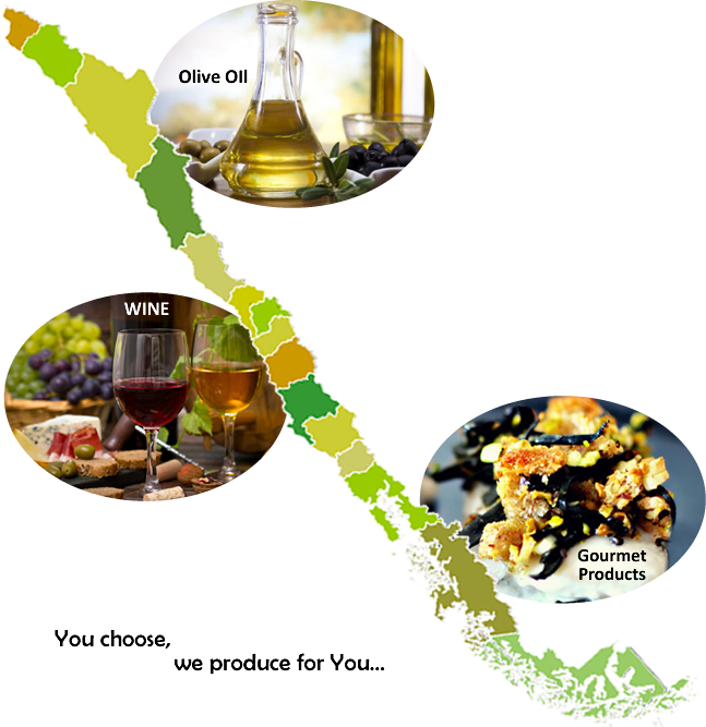 extra virgin olive oil, wine, nuts, and other products.